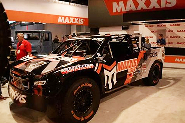 MAXXIS于SEMA展中共设立了“户外”与“室内”两种不同展间,这两大展间各塑造出不同面向之氛围。户外展间以多部曾参加Off-road赛事之车辆,道出MAXXIS于该领域之坚强实力;然而室内则陈列了针对顾客不同诉求而设计之主力商品,展现出MAXXIS之研发能力与产品性能。在众多展台中,玛吉斯展台设计最为酷炫且最大,在众多轮带品牌中,橘白色的标志十分醒目。展上玛吉斯主推MT越野轮带,让许多“暴力改装”的爱好者眼前一亮。